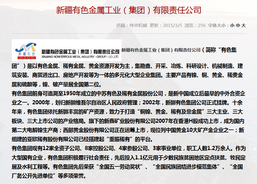 • 合作單位:新疆有色金屬工業(yè)(集團)有限責任公
